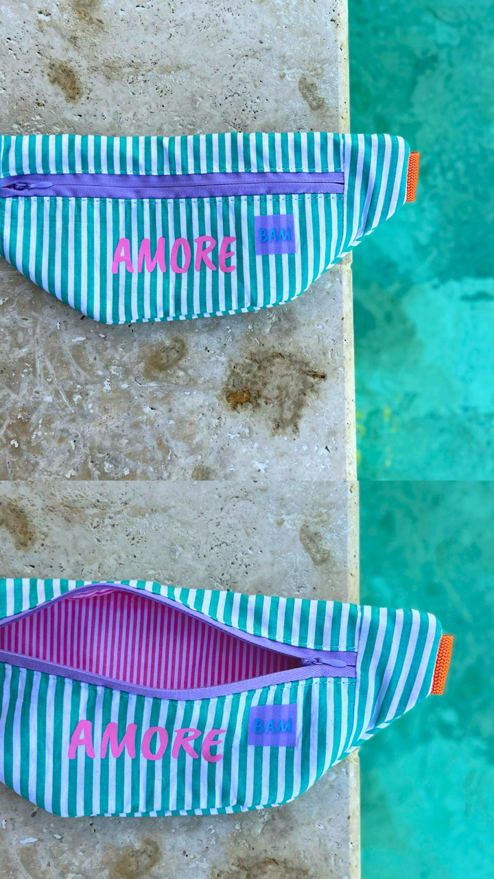 Avec leurs 23 cm de large x 13 cm de haut, les Bamitas sont les sacs banane parfaits pour les enfants… mais aussi pour les adultes qui aiment les mini-accessoires pleins de style ! Chaque modèle est fait main, coloré et joyeux, avec des tissus léopard, pop, ou estivaux .